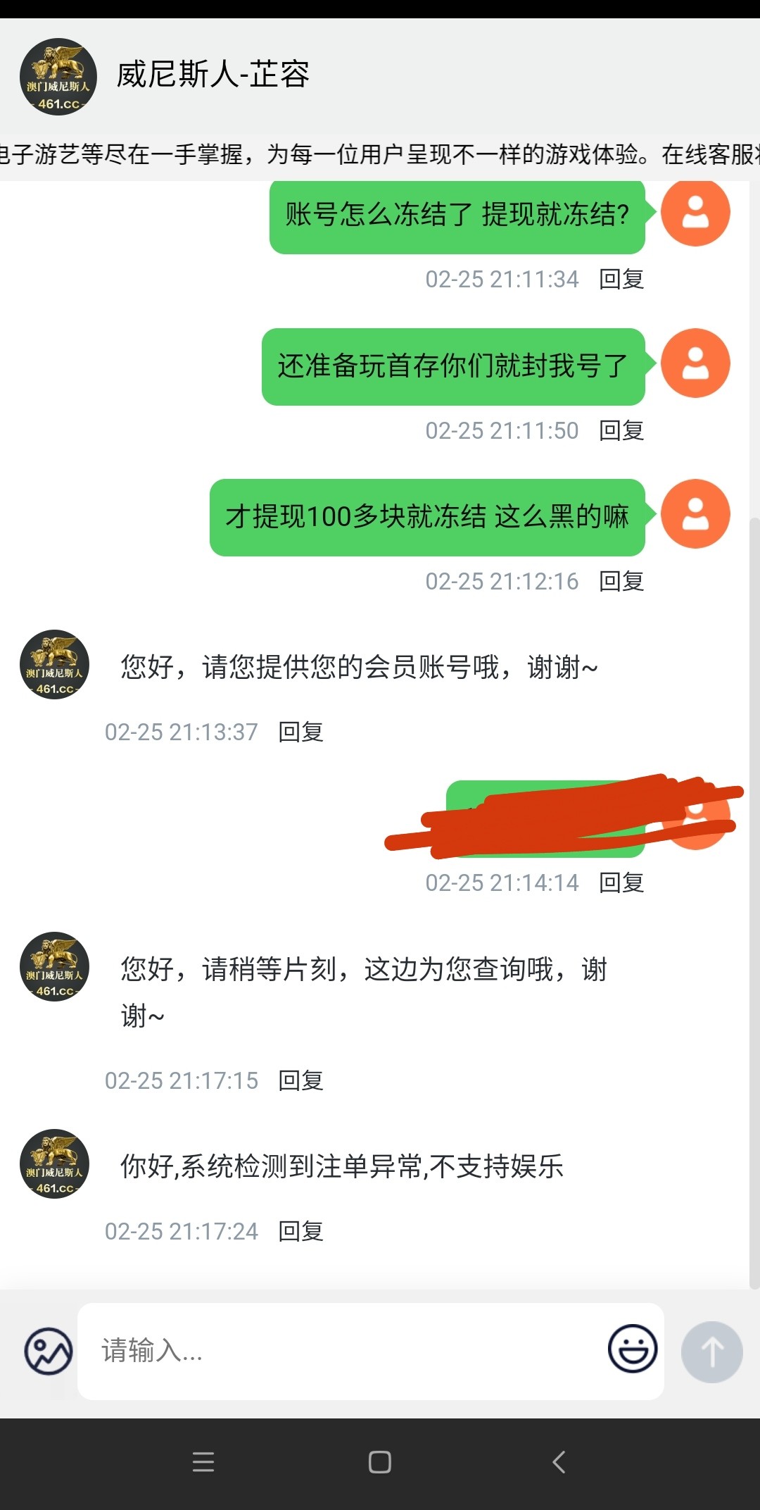 提130 一个小时不到账 上去问客服让我等 过一会直接封号 黑台避雷