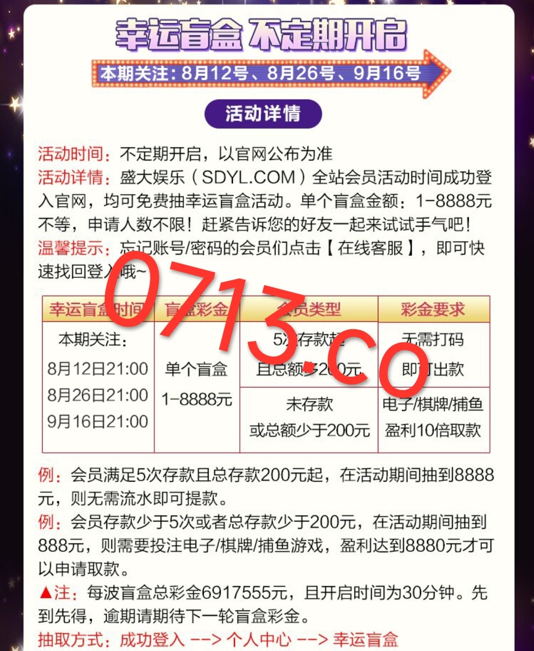 以前特邀系列里面发过这个平台 之前67月份的盲盒活动有抢到几百块的老用户看活动时间登陆账号-个人中心-幸运盲盒去抢就行 游戏和提款限制自行查看优惠