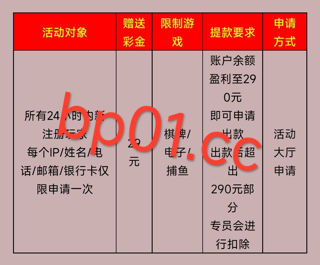 新用户注册绑卡先联系在线客服申请特邀彩金发账号和手机号让他查 没碰瓷到再去申请页面自助申请29元注册彩金 特邀彩金游戏和提款限制自行询问客服29彩金限制游玩电子捕鱼棋牌 最低最高提款290元