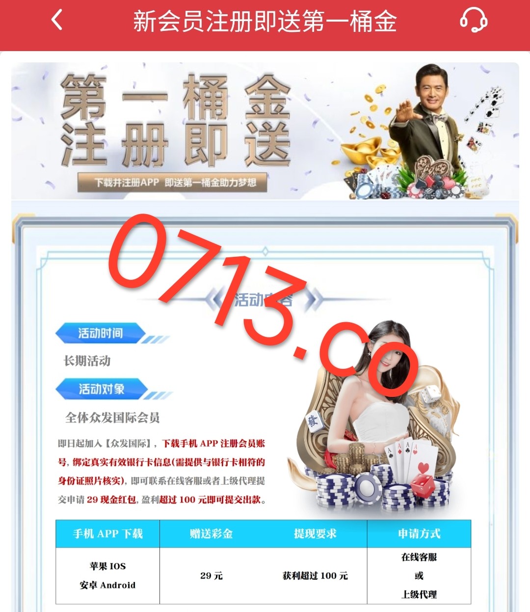 新用户注册绑卡 点击聊天室-联系总代理财神爷申请29元彩金 无游戏限制 最低最高提款100元