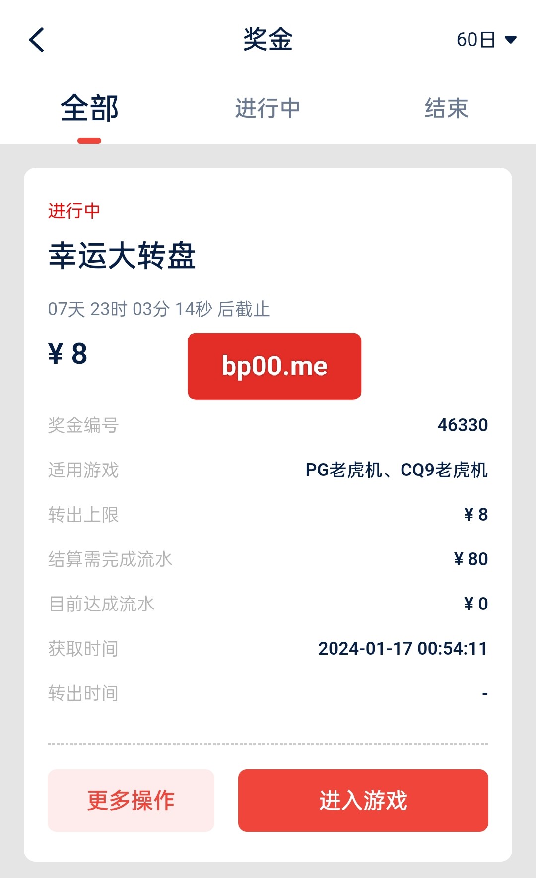 打出来很难的,比如你抽到8快钱,你要先去打十倍流水才能把这八块钱提到中心钱包,中心钱包在去玩赢到的才是真正的余额
