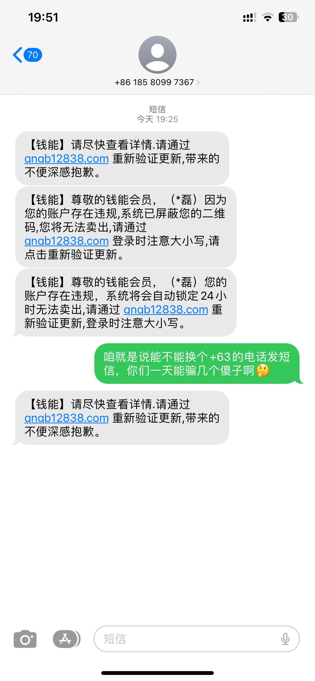 今天卖币发现了个骗局,它先给你买了等付款的时候私聊支付宝说码风控了用手机号转,套到手机号后就说给他号封了去举报,再用虚拟号给你发短信进假链接,叫你收码给什么几把授权,其实就是绑定给他自己平台直接冲了。