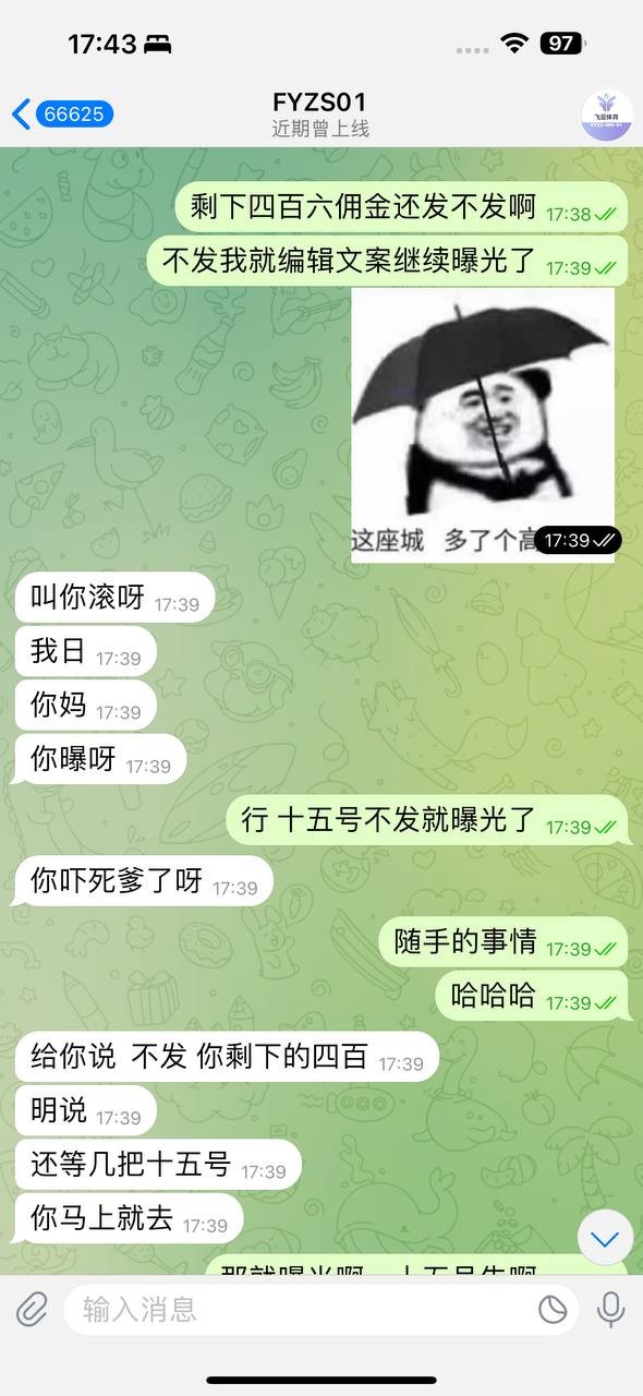 曝光飞亚体育,本人还有四百六佣金没发,规划师也说不会发了叫我随便曝光,OK我随你愿,飞亚这个平台很垃圾,他们发上个月的佣金还要看你下个月发不发展, 其它包网也不会这样吧,难不成代理们这个月做,下个月想换台发展了你们就不发佣金吗?这什么逻辑 还有我五月份开的线的人头费流水费,他们不单单看六月份的留存率,还要看七月份那些老玩家玩不玩才给你审核的全网仅此一家! 都这么拖沓了我怎么可能还叫玩家继续玩下去呢? 发的一部分佣金还是我天天画大饼舔招商才给我,现在好了直接黑呗,望广大代理开开眼不要继续干飞亚了,柬埔寨的包网,佣金难说,人头费流水费是不可能给你发的,我了解到的没有一个代理拿到五六月份的流水费人头费,他们赶这波欧洲杯后就跑路了跟当初的企鹅一样!!!