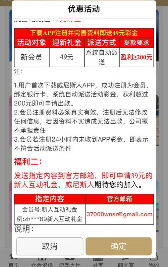 跟福彩系列一样的台子看脸送,新人注册下载APP送49彩金,发邮件送39可以都去试试,记住要三同手机号实名yhk要一致才行,具体自测切记勿充值。