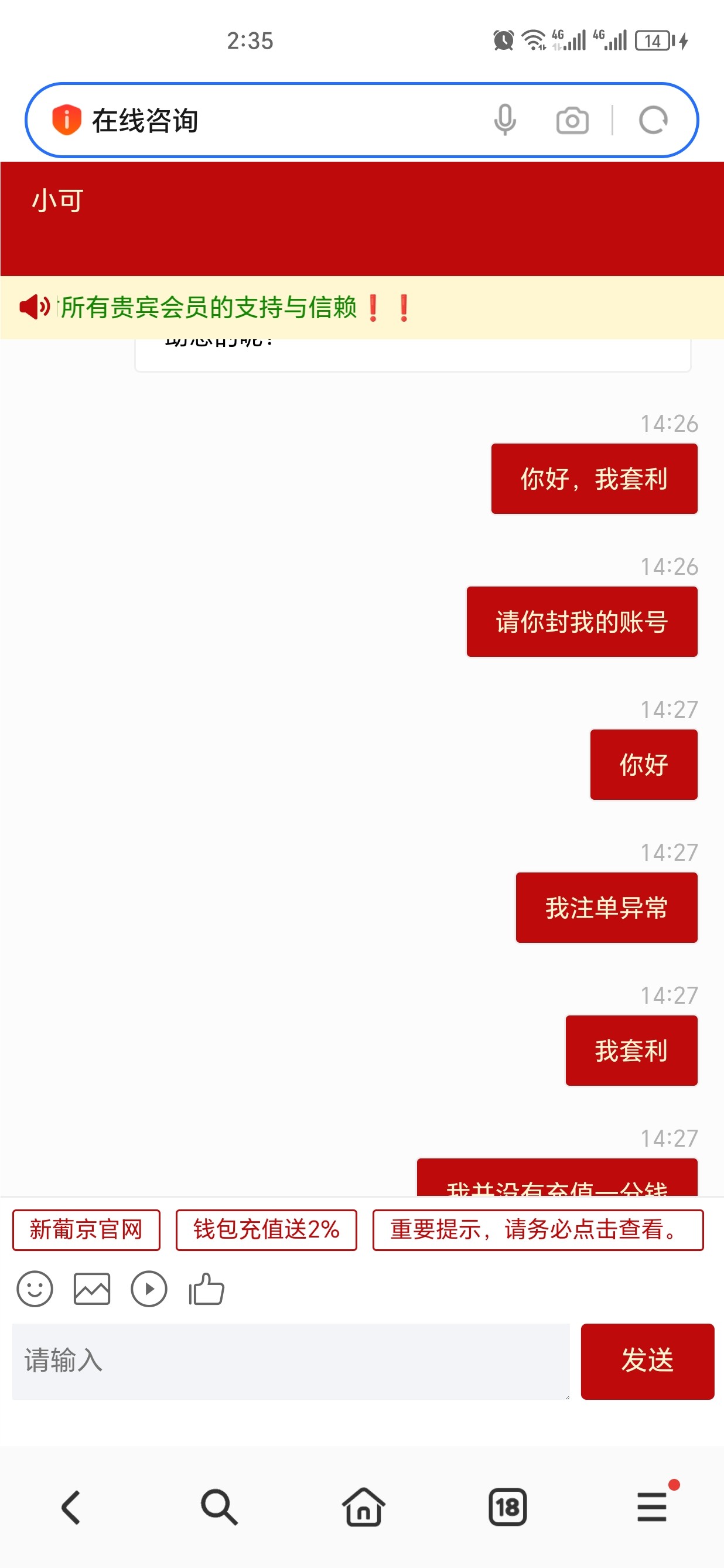 网赌从来没有得过500倍以前,充啦2W一分不给,毁号,这是第5个号,认真戒赌,祝你们都发大财
