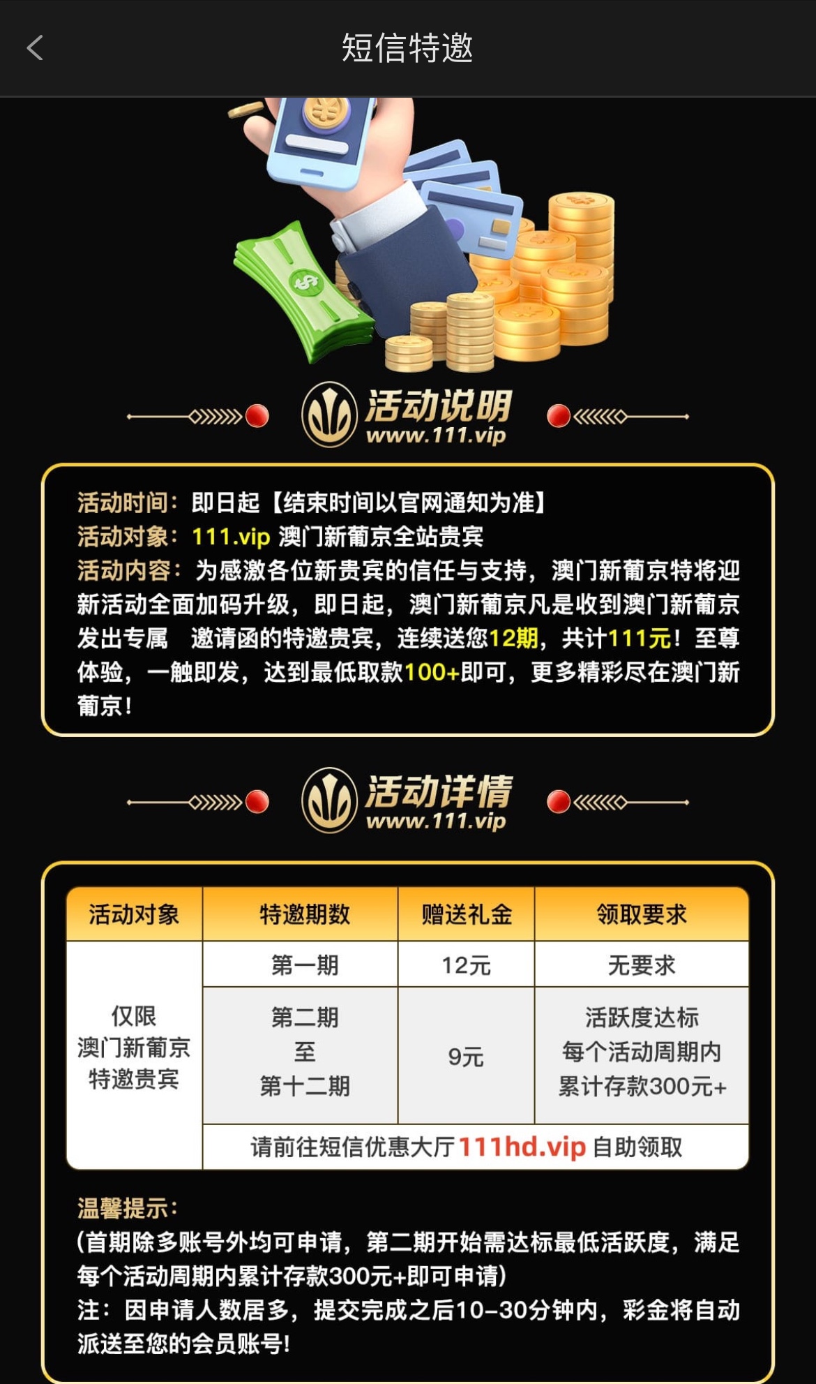 碰瓷短信特邀,要用手机号注册绑定银行卡完善资料活动大厅申请