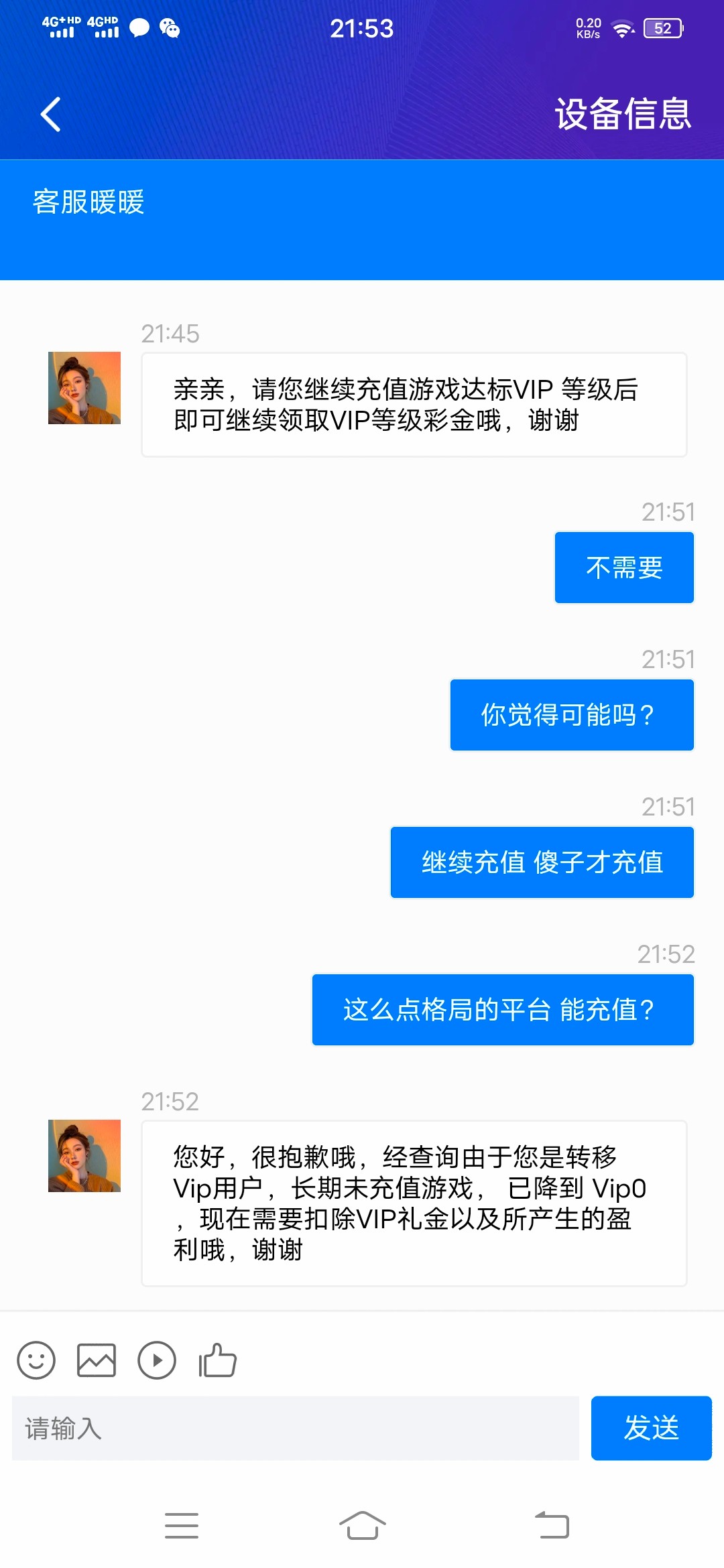 真是个沙雕,长期不玩vip会掉 现在的年轻赌狗怎么那么傻逼的呢