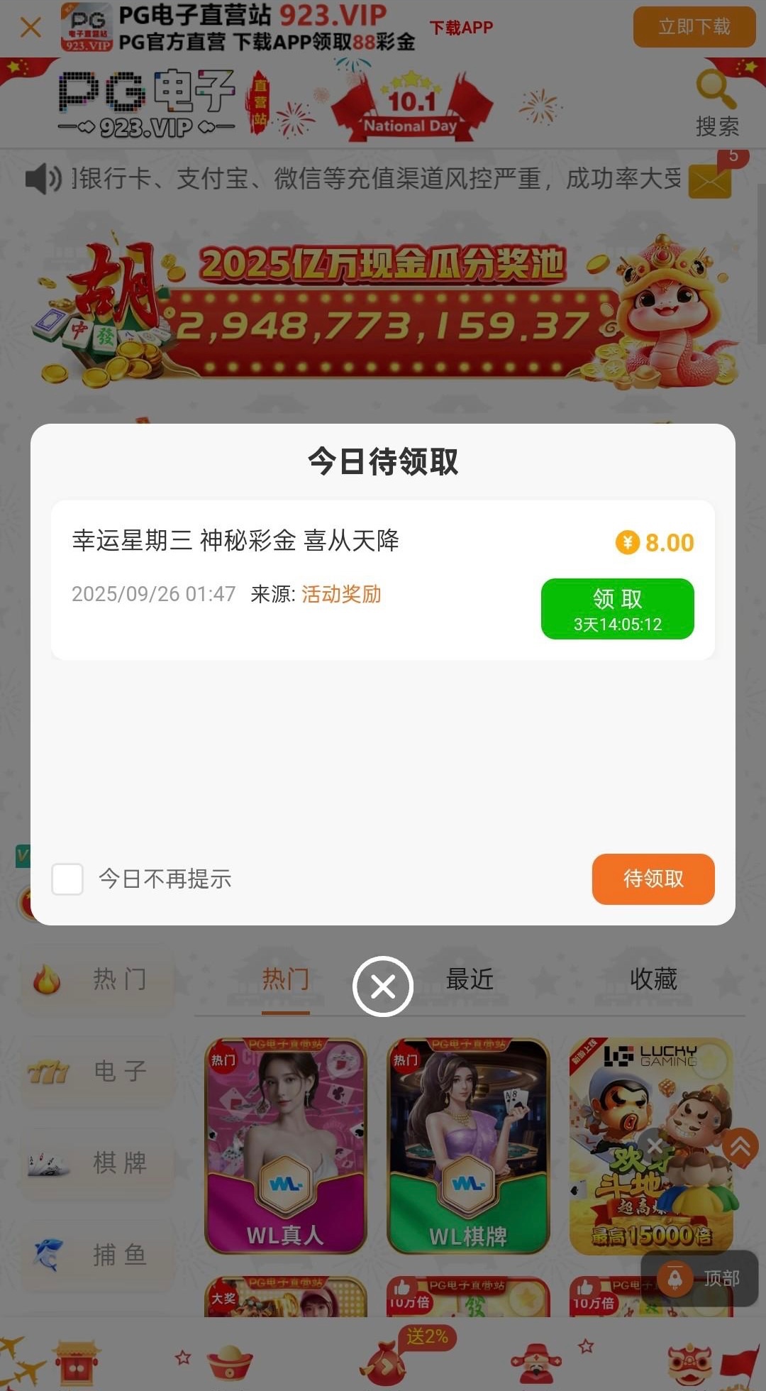 有充值过的兄弟倒是可以登入看看有没有类似彩金领取