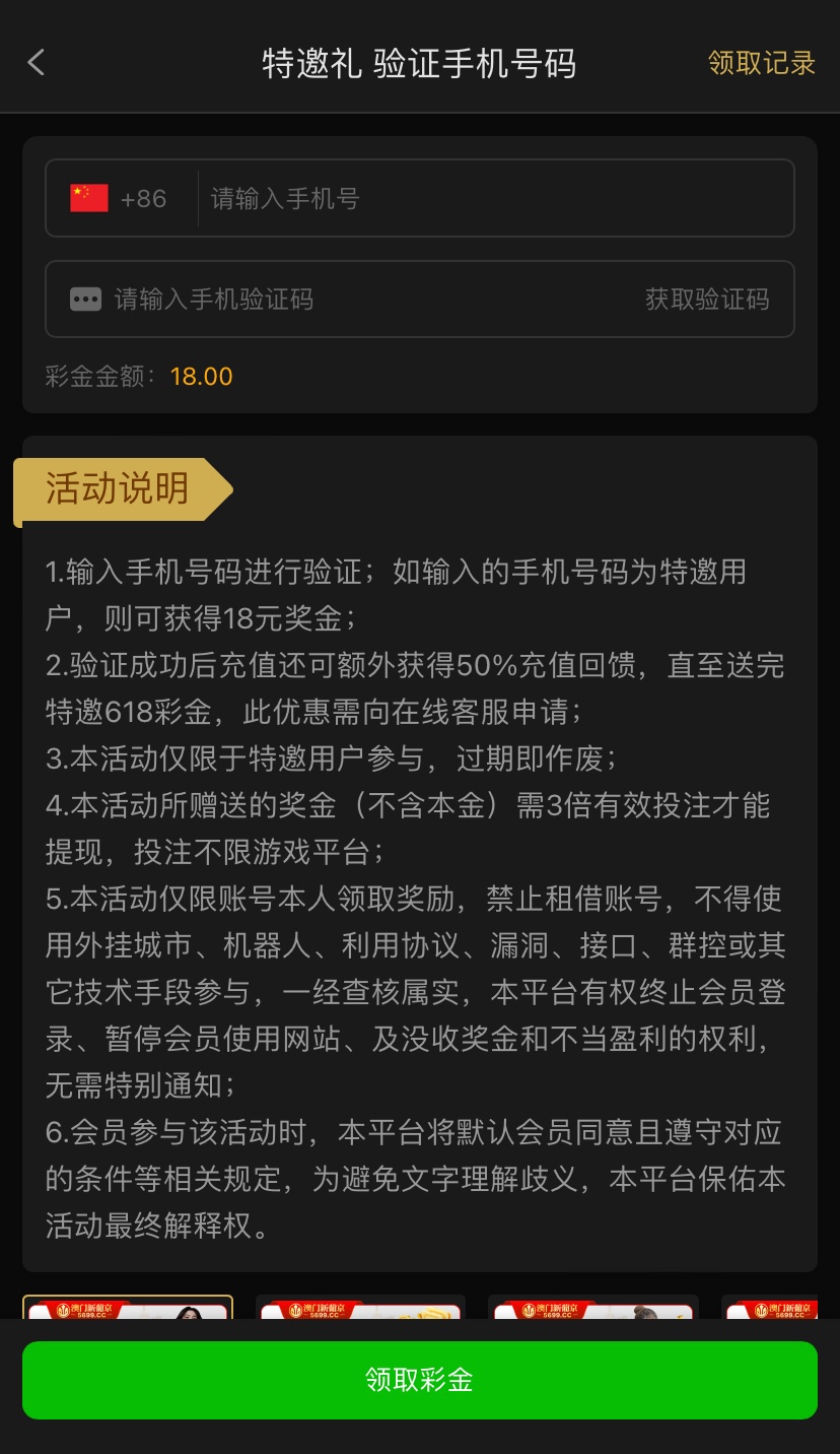 注册好账号在优惠里自助领取彩金,3倍流水,不限制游戏