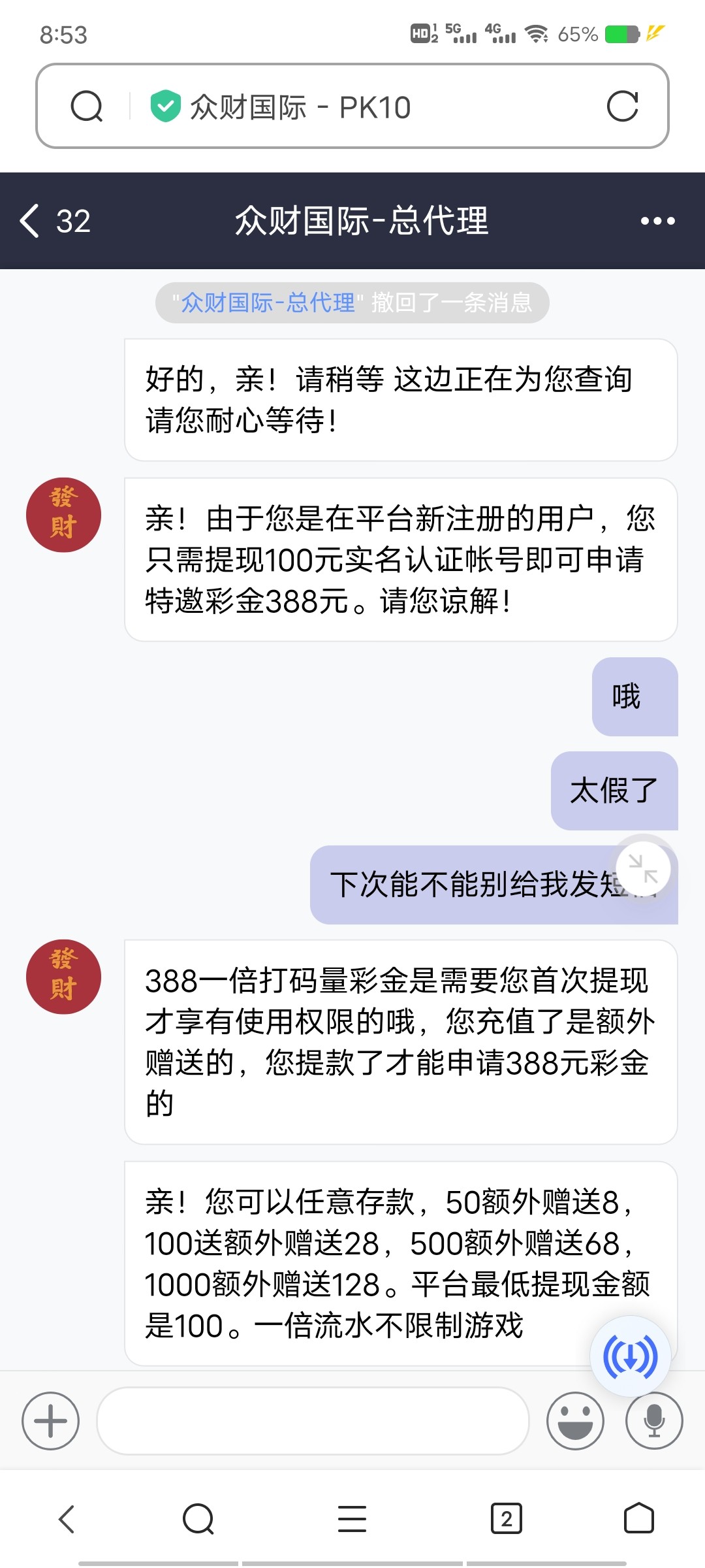 冲jb、388彩金分开送、第一次送38、后面充值才送、都是套路、都他妈曝光了,你还玩