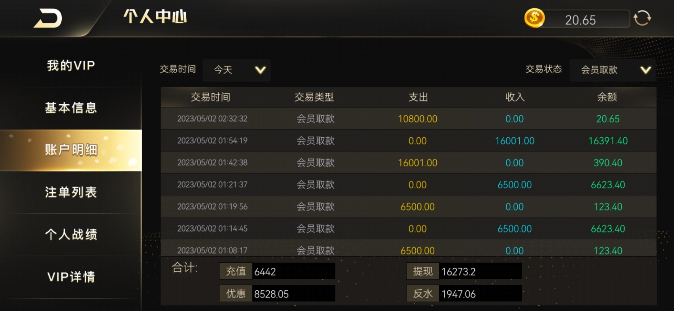 开心棋牌(以前的万亿贵宾会)今天上去看了眼发现有 18 的五一会员回馈,然后去打新版五龙捕鱼爆了一个 9000 倍,四五个 4000 倍,然后提现 6500 退回叫我打 5 倍流水,打完提现 16001 还是退回再来五倍,我本来都不报希望当试玩了,没想到这次提现 10800 到账了,美滋滋!随机挑选几个幸运老哥 28.88