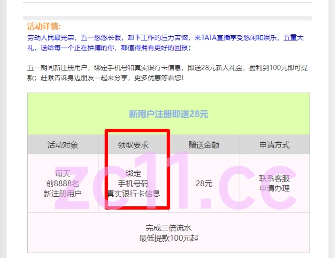 TATA注册说28彩金新人注册绑定银行卡去找客户领取28彩金。今天领不到的,第二天还可以申请一次