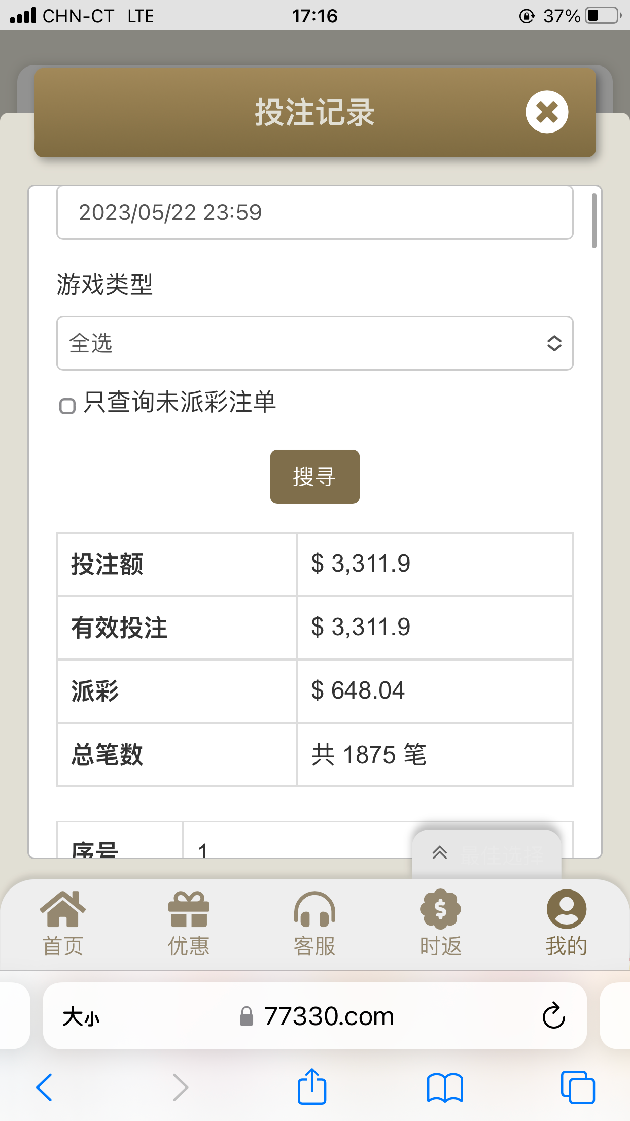 一共充5次250元,0.4毛打麻1不进活动,0.4毛打麻2进2次空转2次,0.4打点石成金进活动爆0.39元,0.5打宝石传奇不进活动,0.5打足球进活动8次爆2块!以上是全杀,0.4超过8元的爆分一次没出过