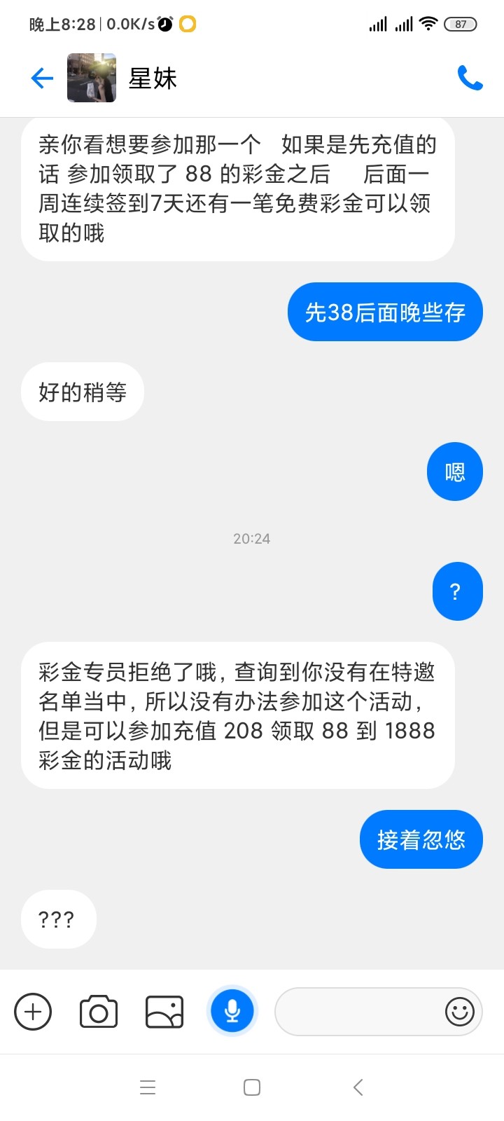 新用户下载APP注册进去联系客服碰瓷送38,不能玩电子,提款限制咨询客服