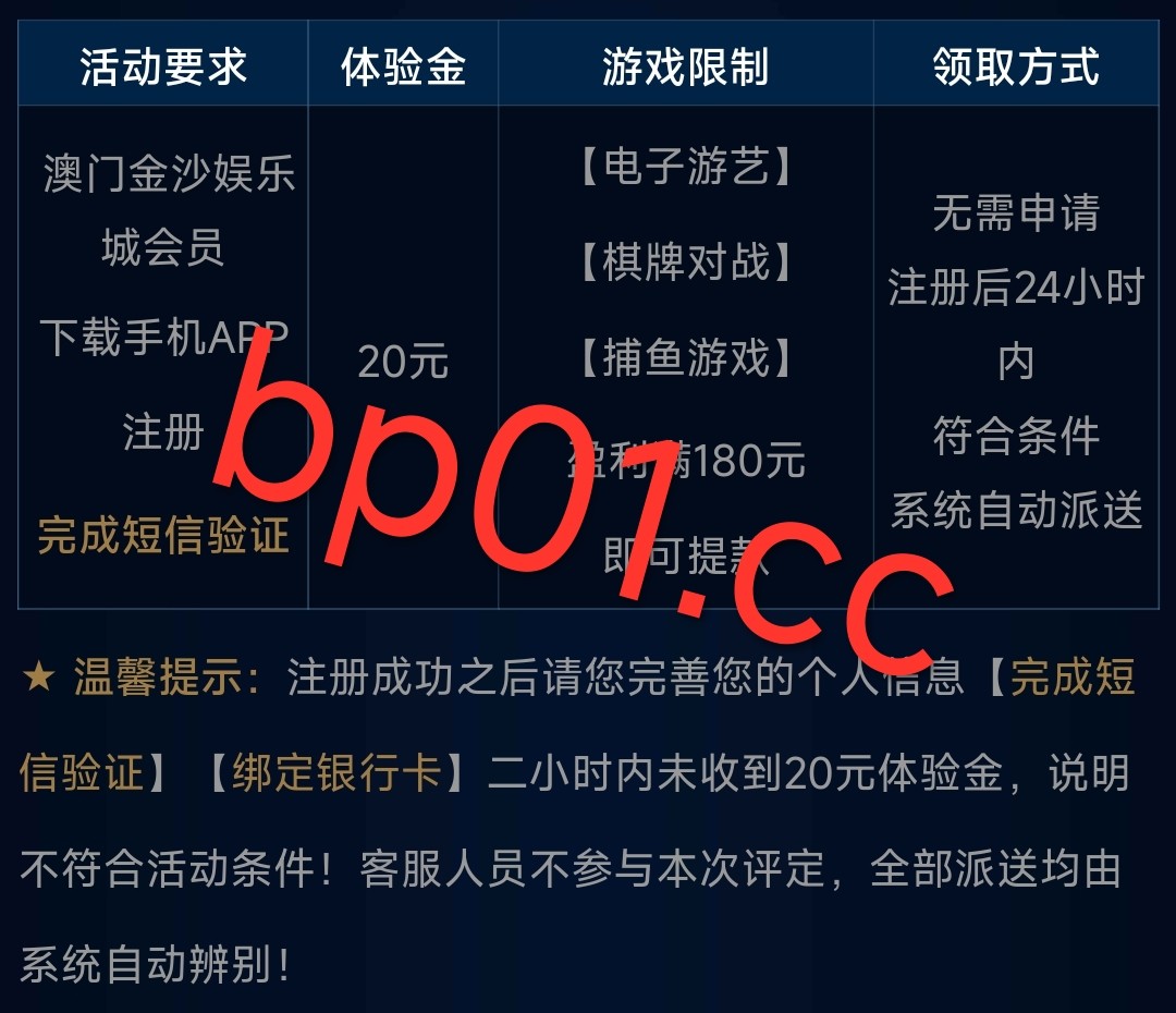 新用户注册绑定手机号银行卡下载app2小时以内自动赠送20元彩金 限制游玩电子捕鱼棋牌 最低提款180元