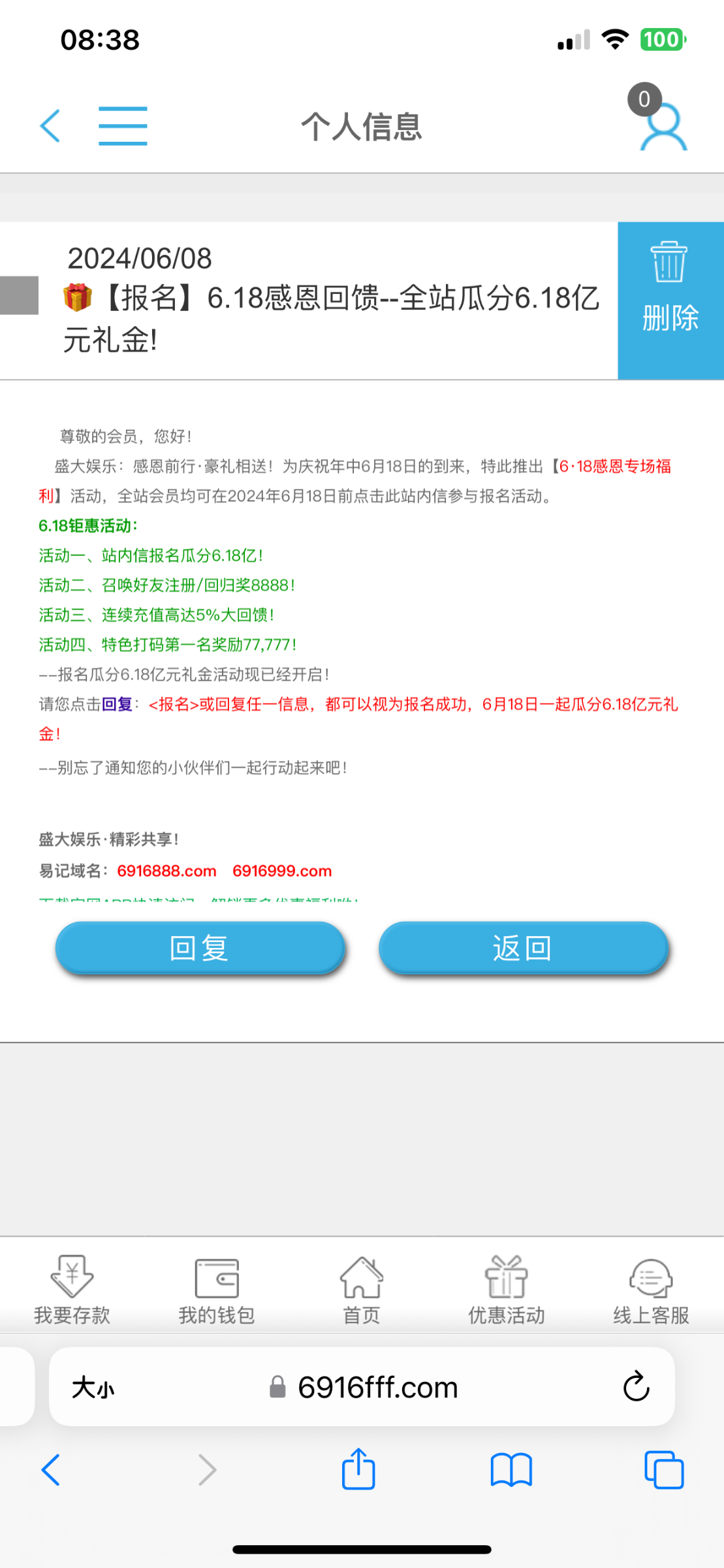 登录后站内信回复任意内容
