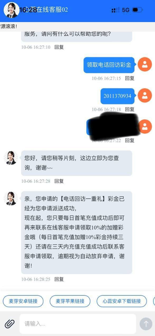 老用户登录,联系在线客服领取电话回访彩金,在名单内的秒怂,新用户还有这注册特邀彩金可以去试试。