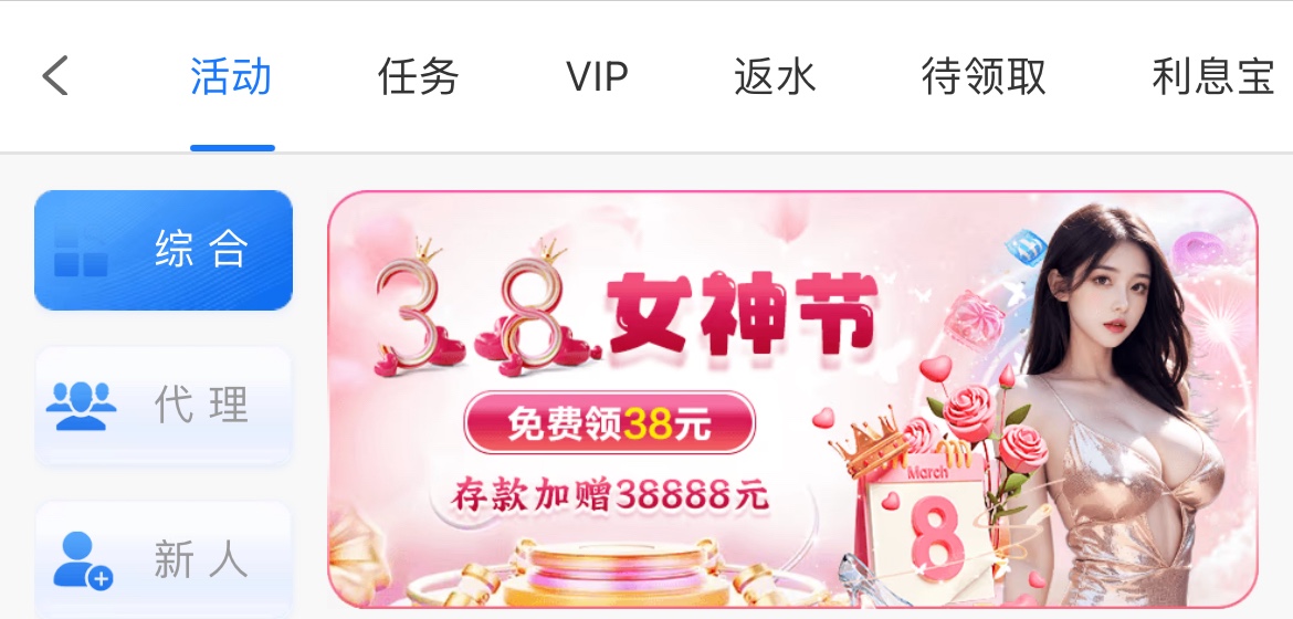 3月8号历史存款388以上回馈38彩金,满足要求的兄弟8号那天上号领,5倍流水,最高提888,限PG电子