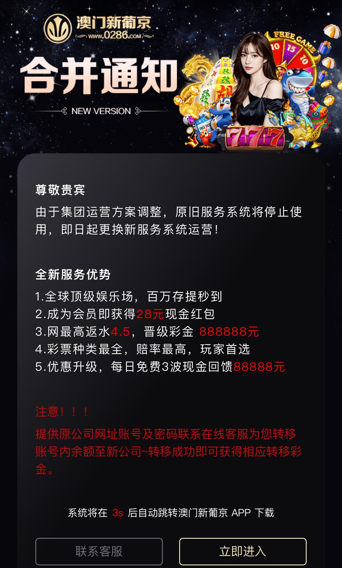 劫持网站 会跟你要你玩的的网站登陆密码 取款密码 登陆上去后会给你全部改掉  送的28没游戏限制人多易黄了