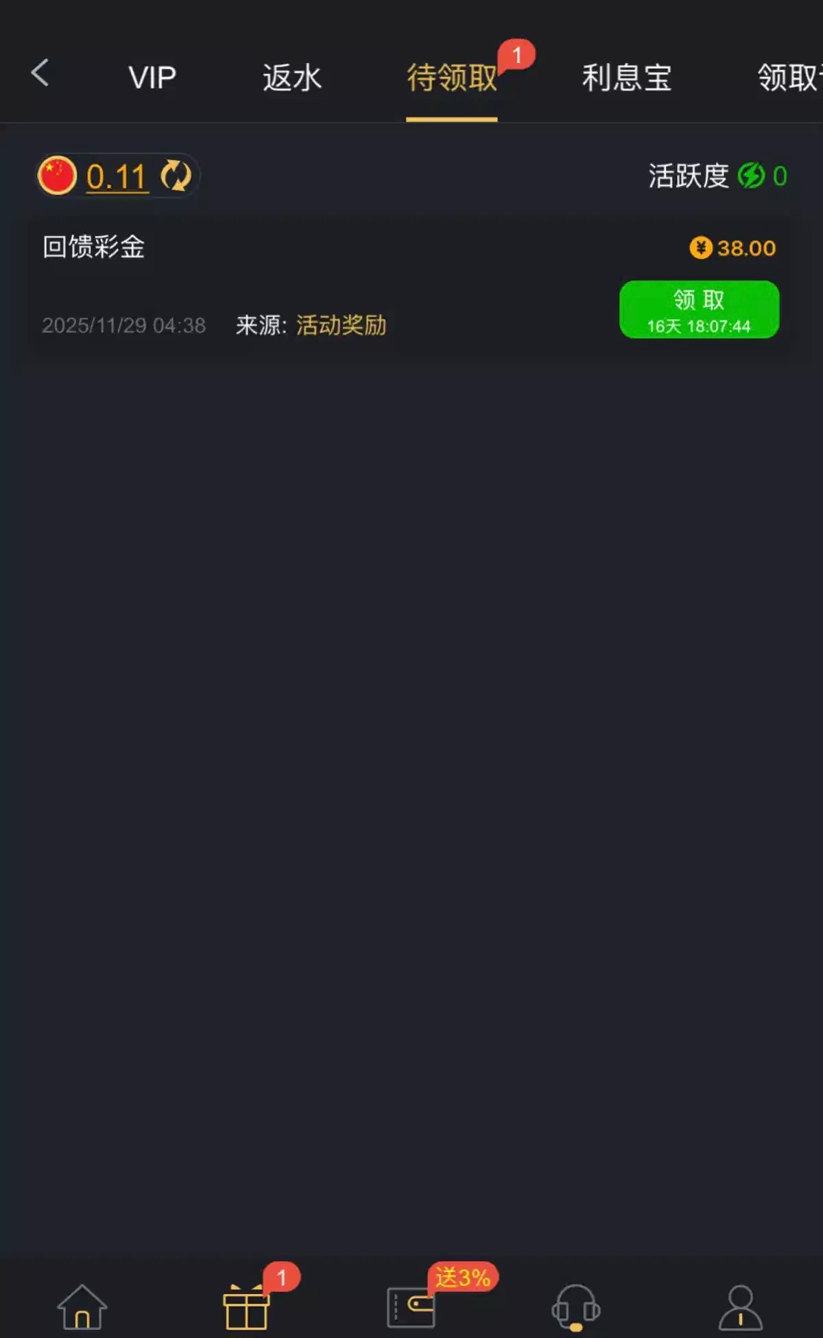 近期有兄弟充值打过20+20的可以登入上看看有没有这个彩金领取