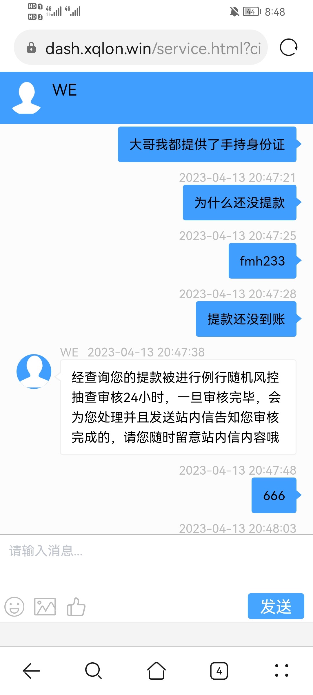 存了500送了168一杯水我提款750都没到账已经提款两天了