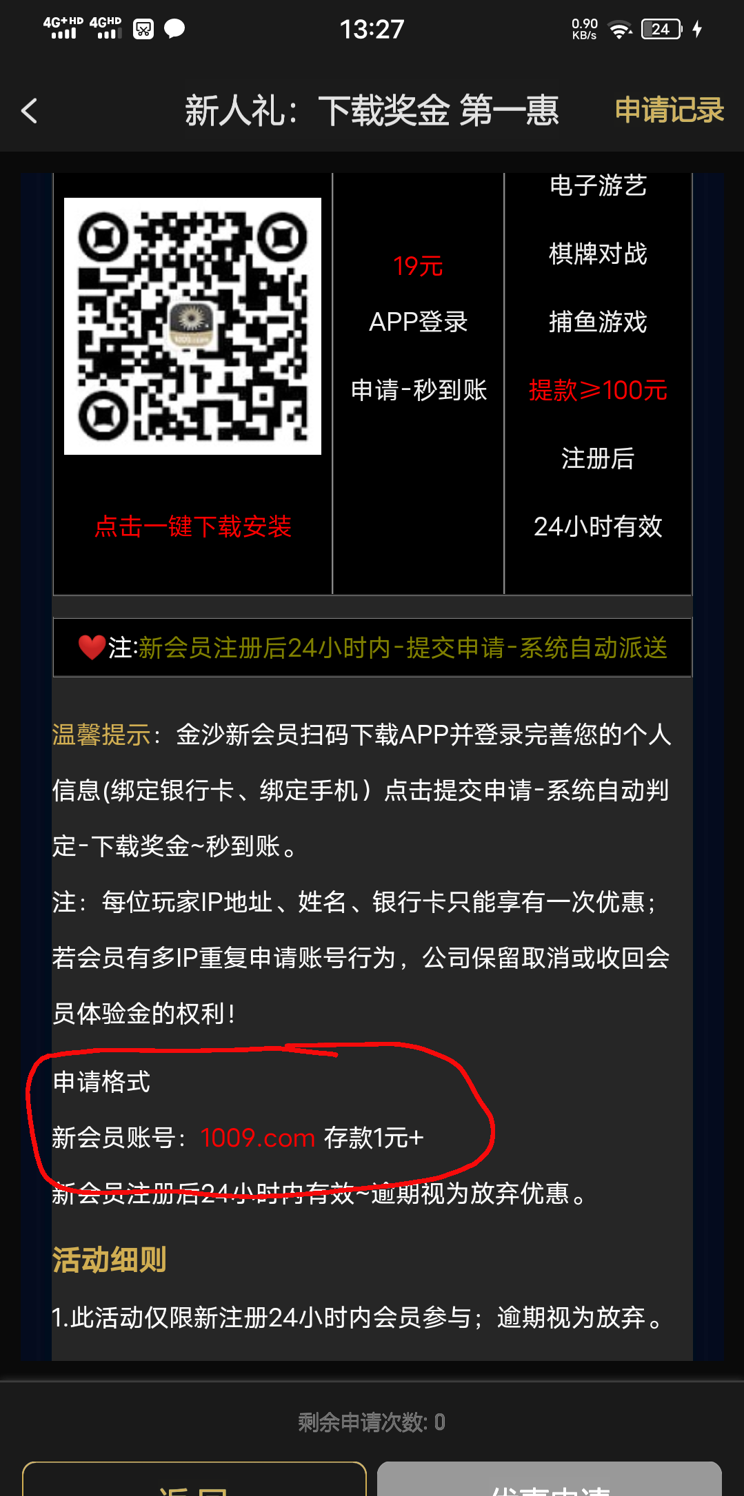 耍我呢   楼主操你妈至少要充值才能申请