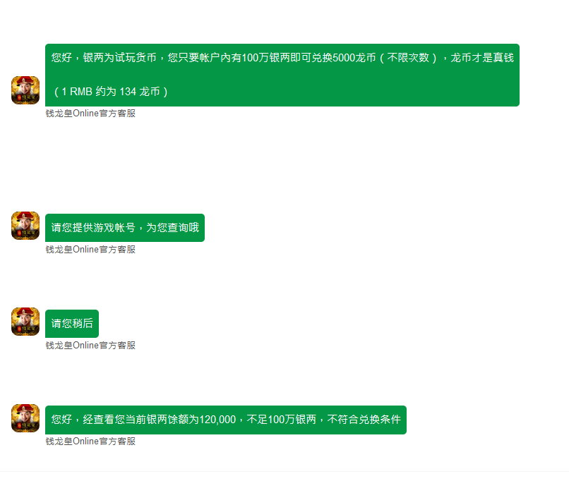 客服不理人怎么换龙币啊