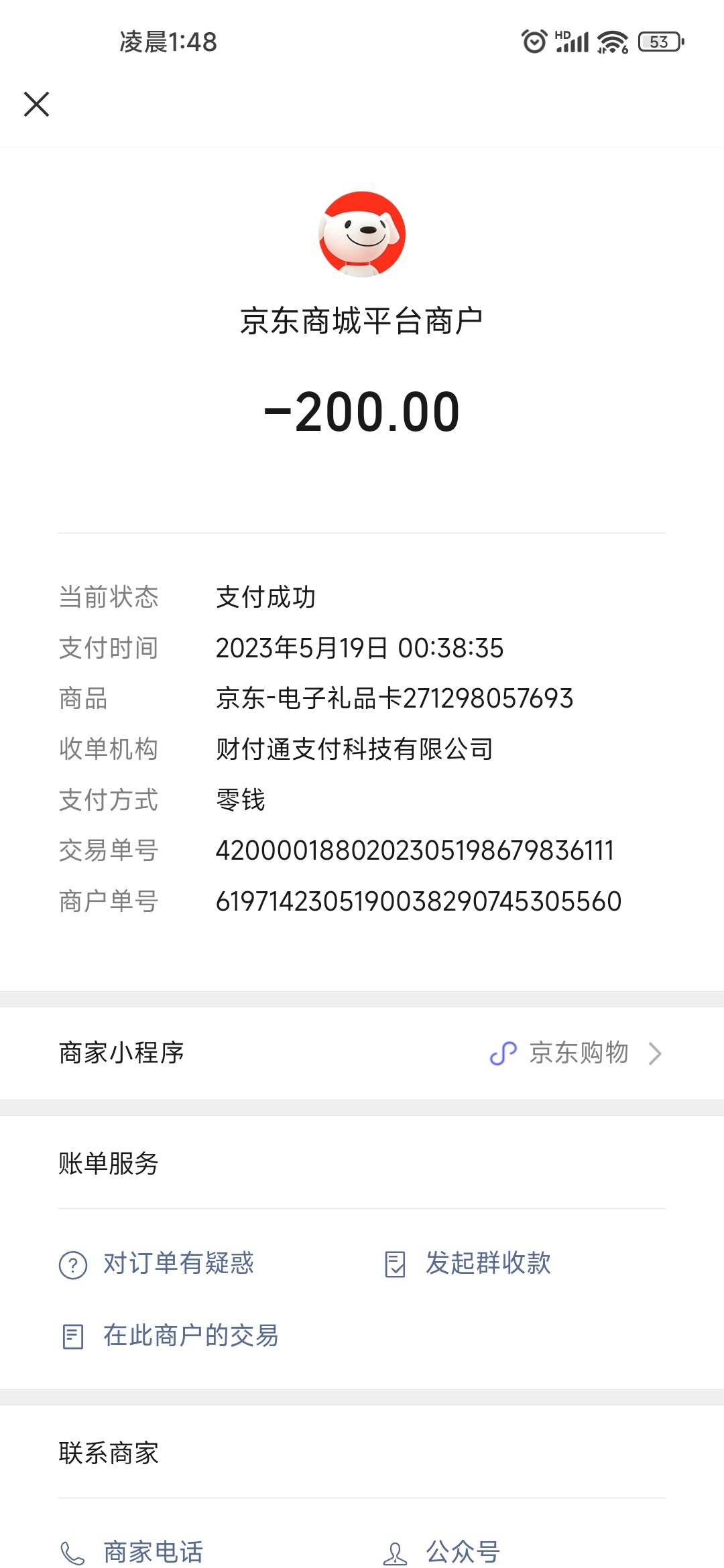 两笔e卡。一笔500一笔200.提交完第三方第三方都绑定完了。没到账