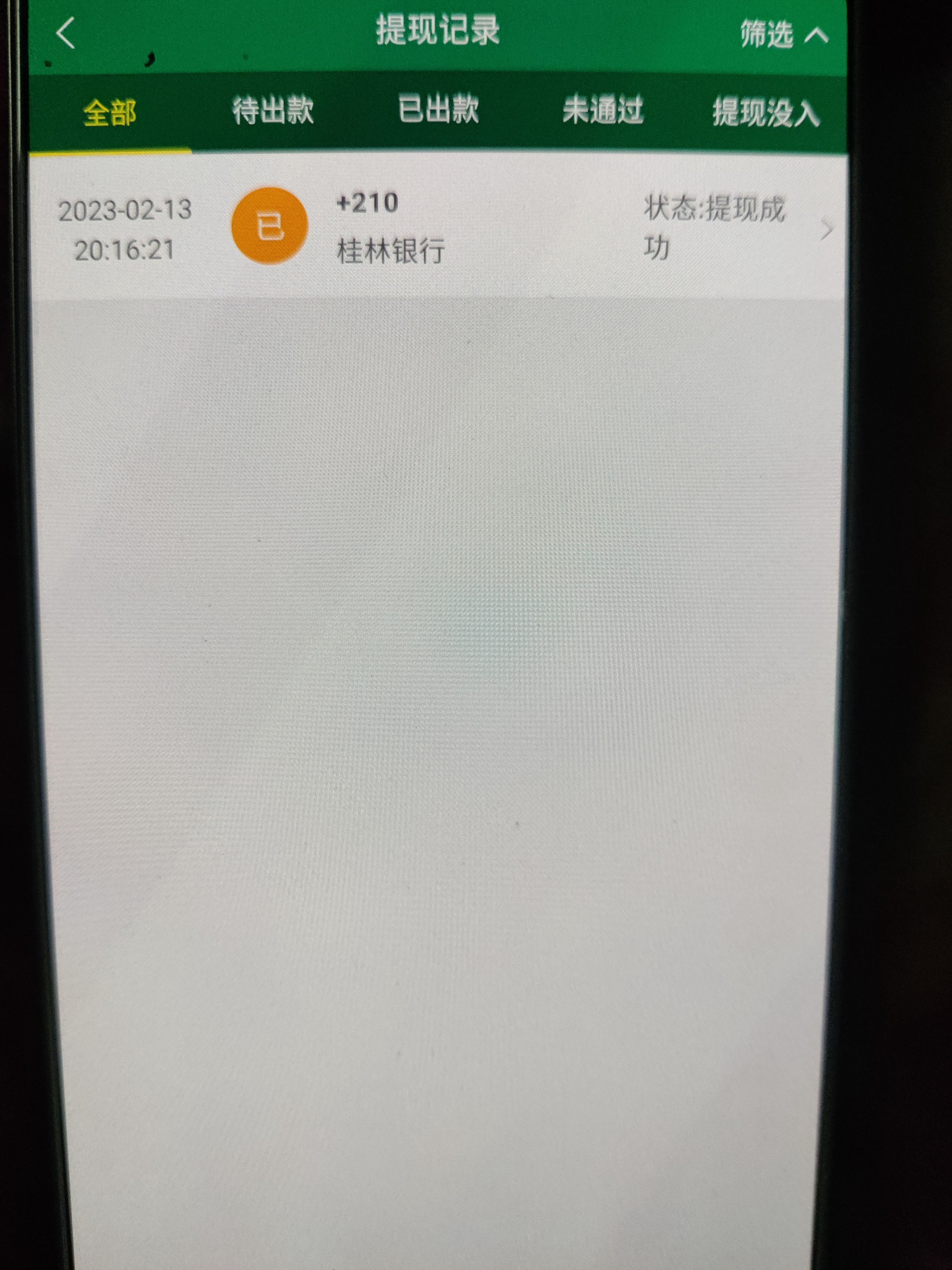 210出款成功,2个号 一个上180挂了,刚才另外一个直接上了210,到账